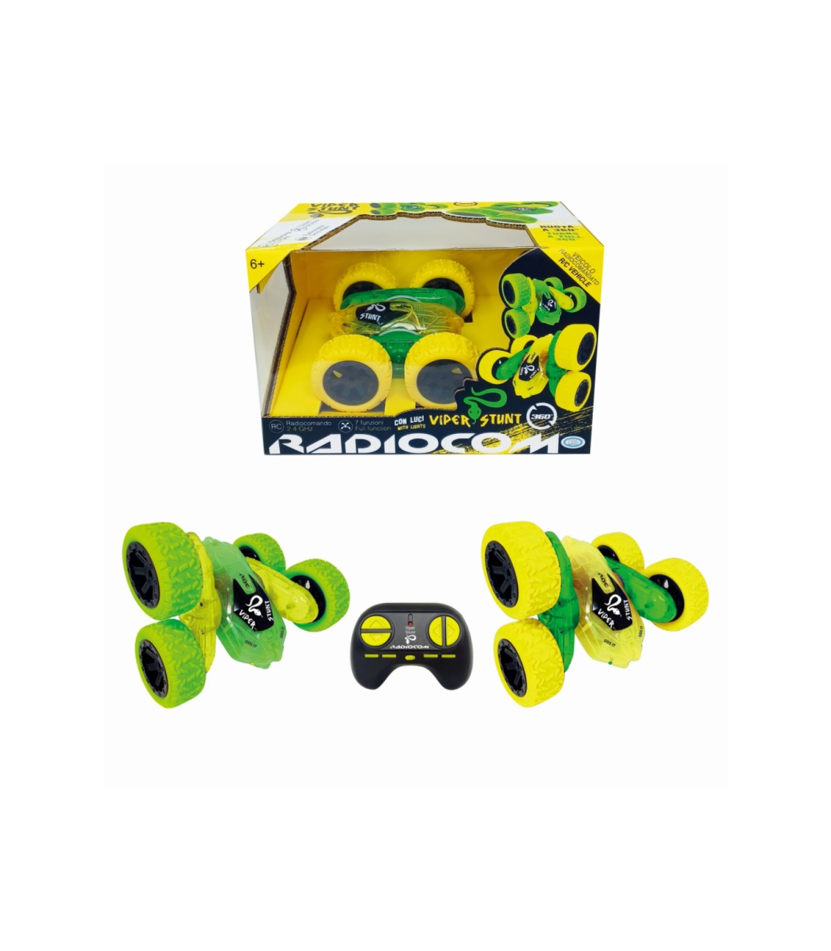 Radiocom - Viper Stunt Auto RcRC 2.4 Ghz, auto stunt misura 16 x 15.8 x 7.5 cm, 7 funzioni, con luci, ruote snodabili,cavo di ri