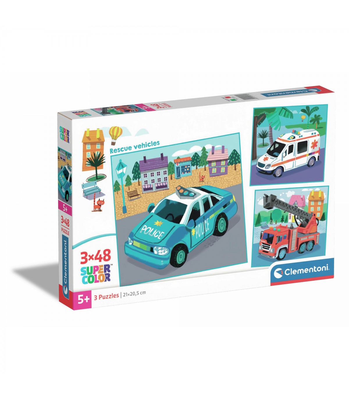 3 Puzzle da 48 Pezzi - Rescue vehicles