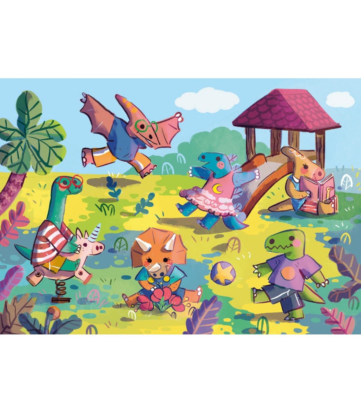Puzzle da 24 Pezzi - Gigante da Pavimento: Dinosauri al Parco Giochi
