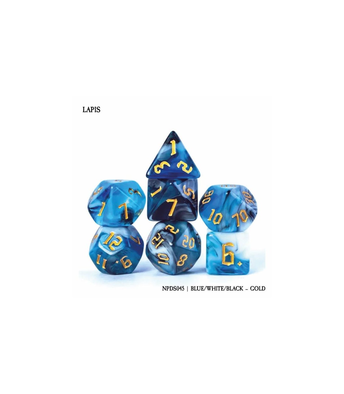 Set di 7 Dadi - Lapis - Blue / White / Black - Gold