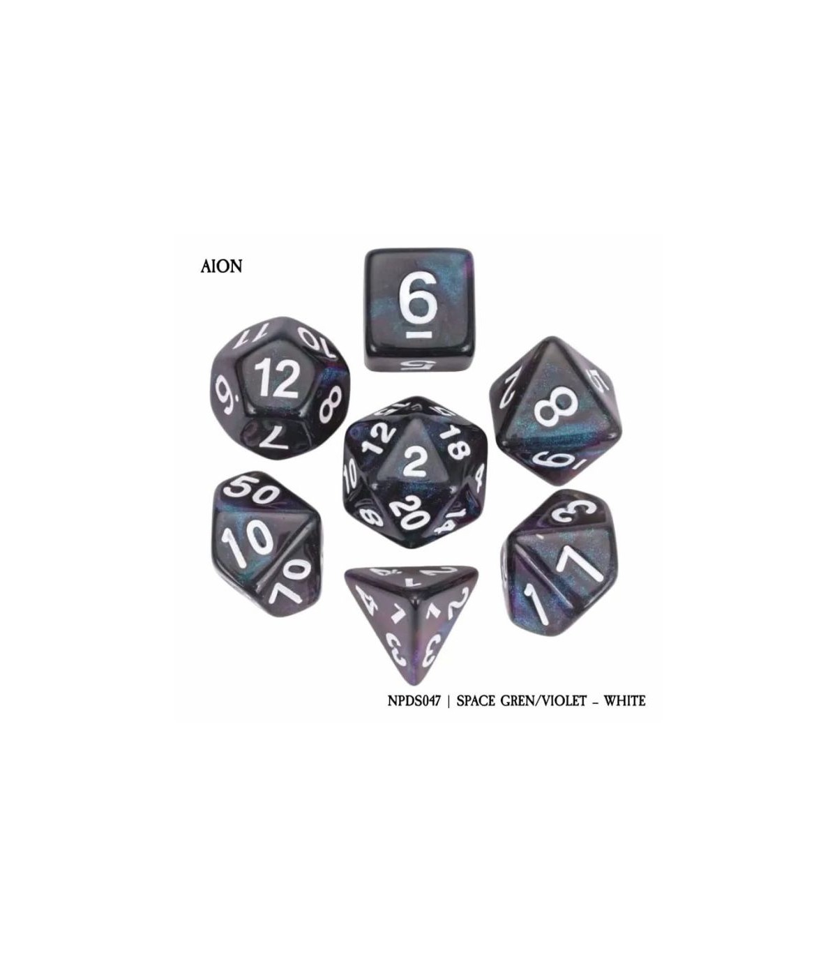 Set di 7 Dadi - Aion - Space Green / Violet - White