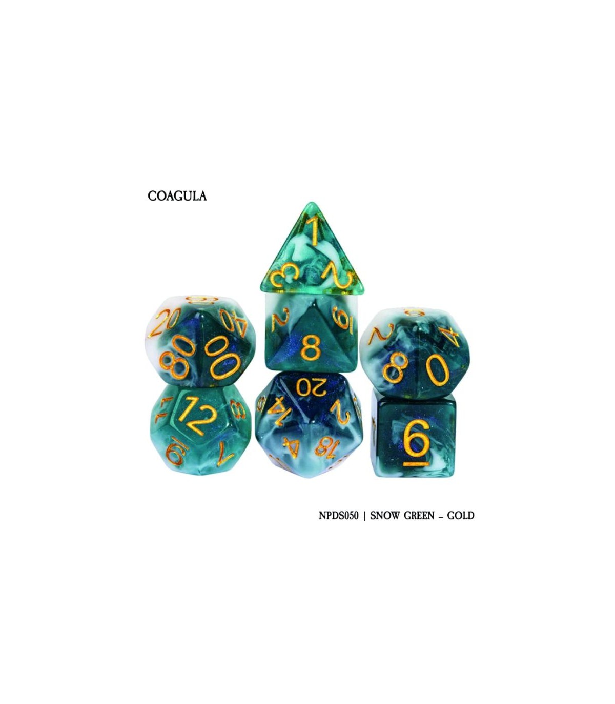 Set di 7 Dadi - Coagula - Snow Green - Gold