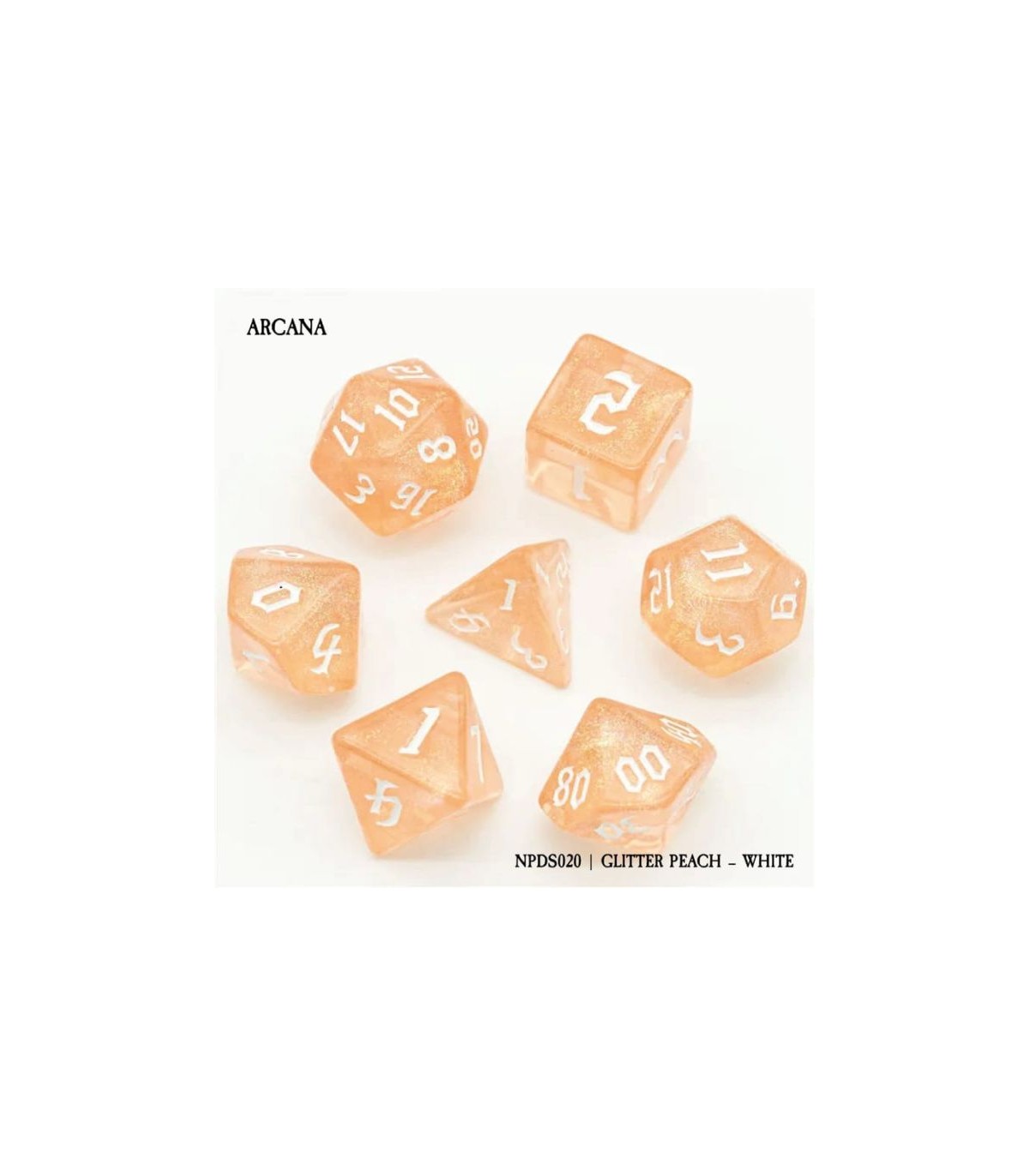 Set di 7 Dadi - Arcana - Glitter Peach - White