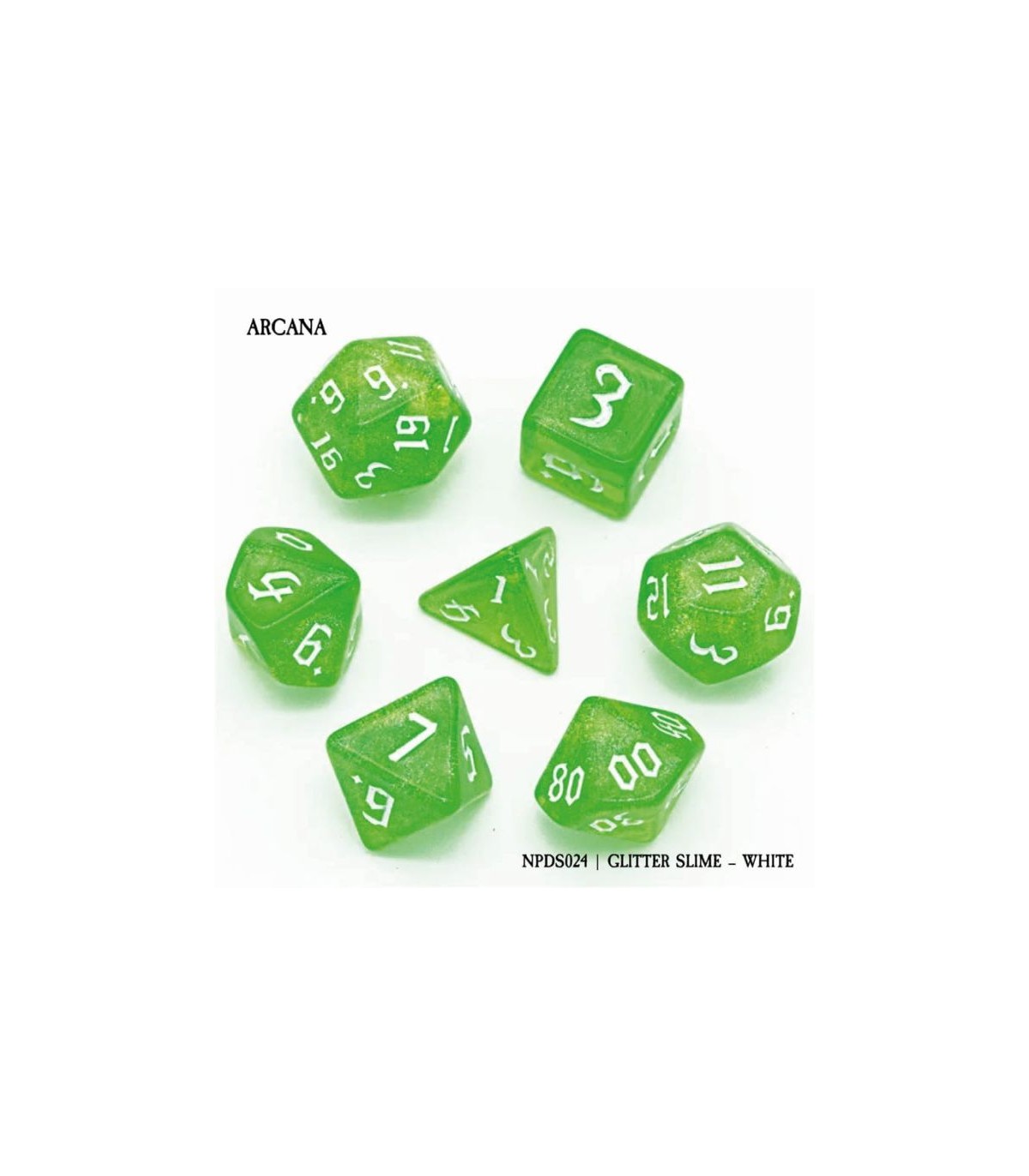 Set di 7 Dadi - Arcana - Glitter Slime - White