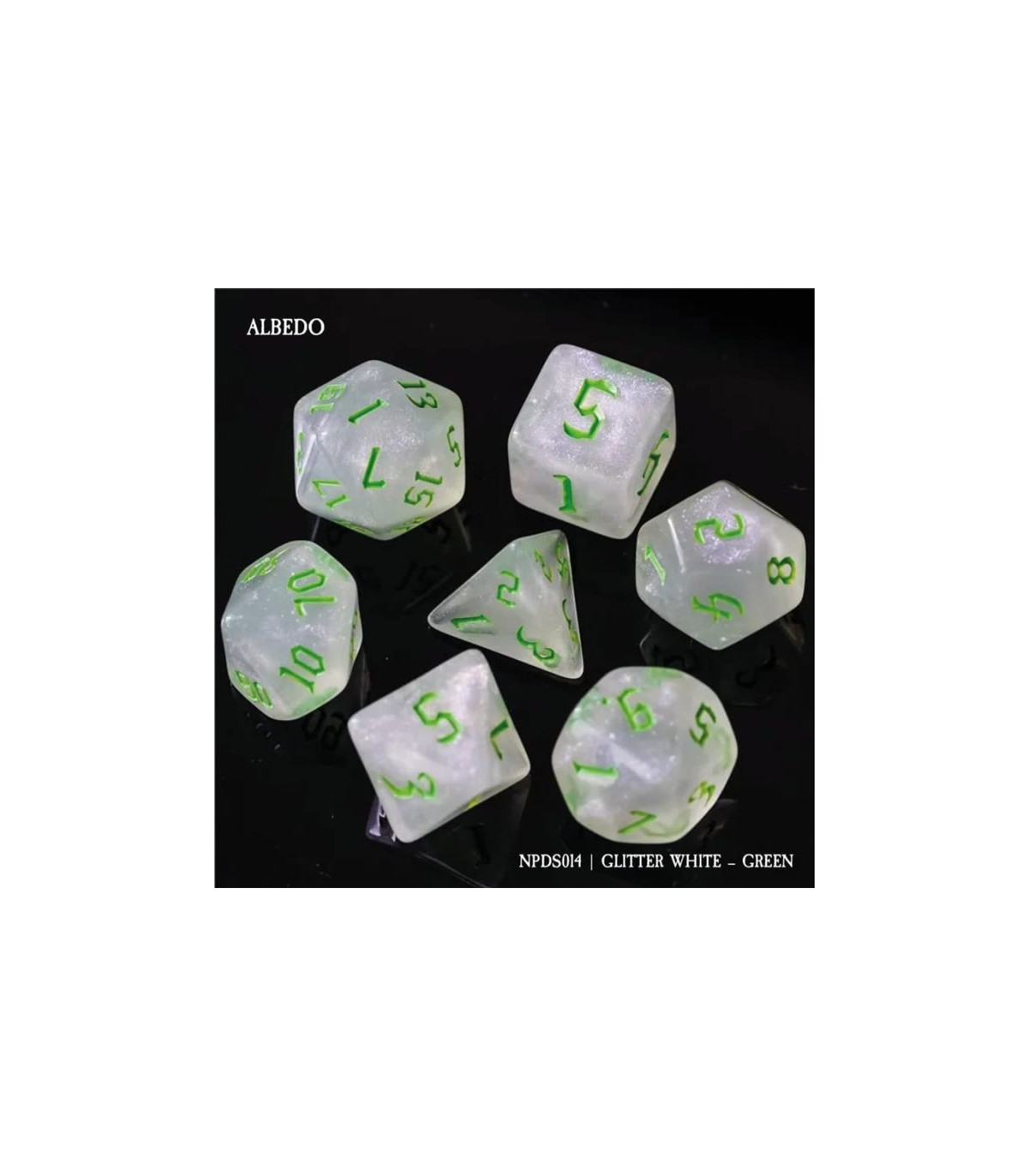 Set di 7 Dadi - Albedo - Glitter White - Green