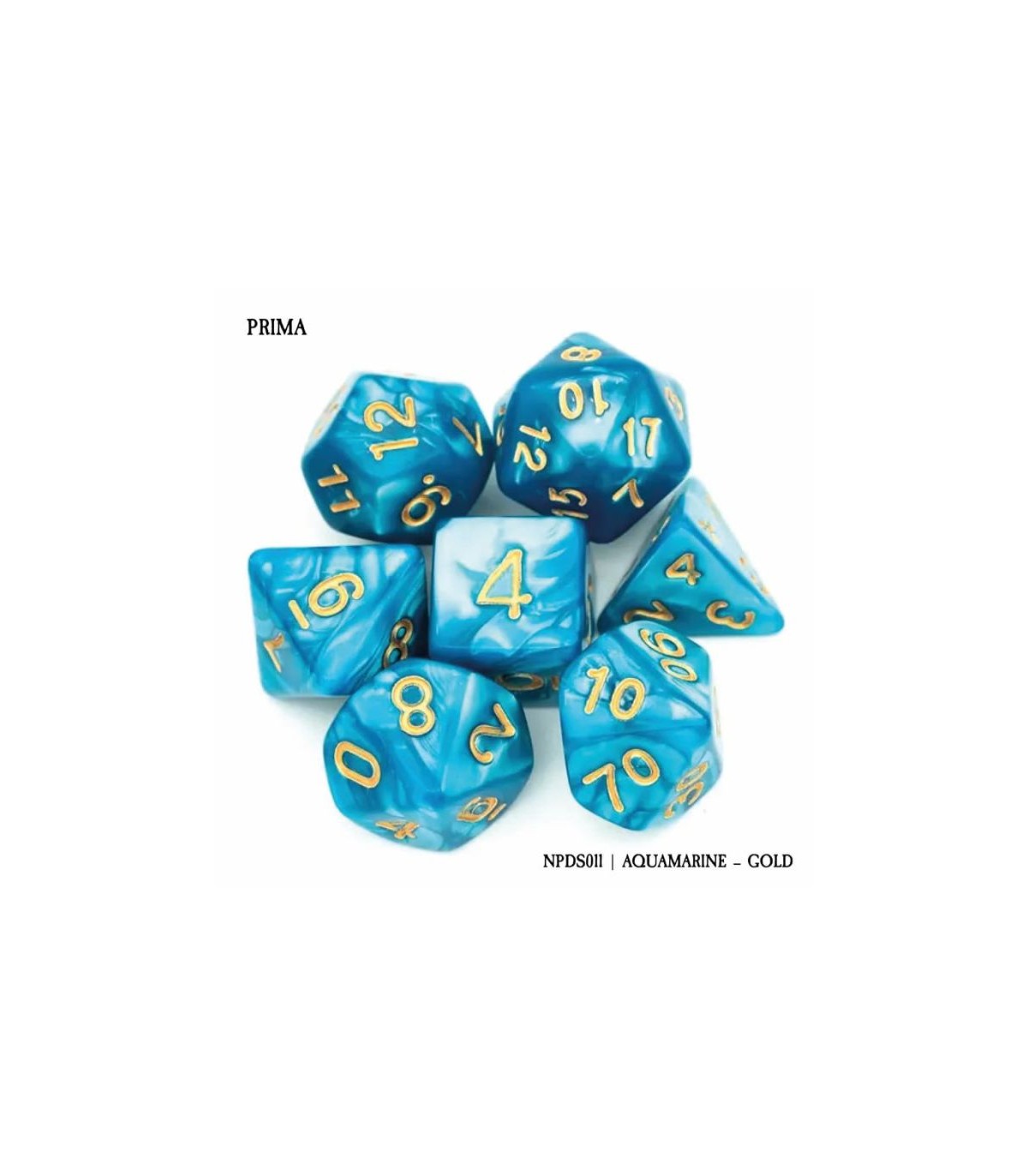 Set di 7 Dadi - Prima - Aquamarine - Gold