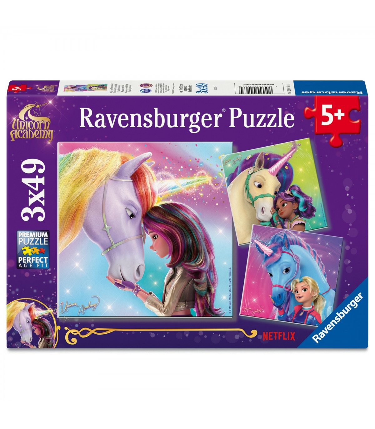 3 Puzzle da 49 Pezzi - Unicorn Academy