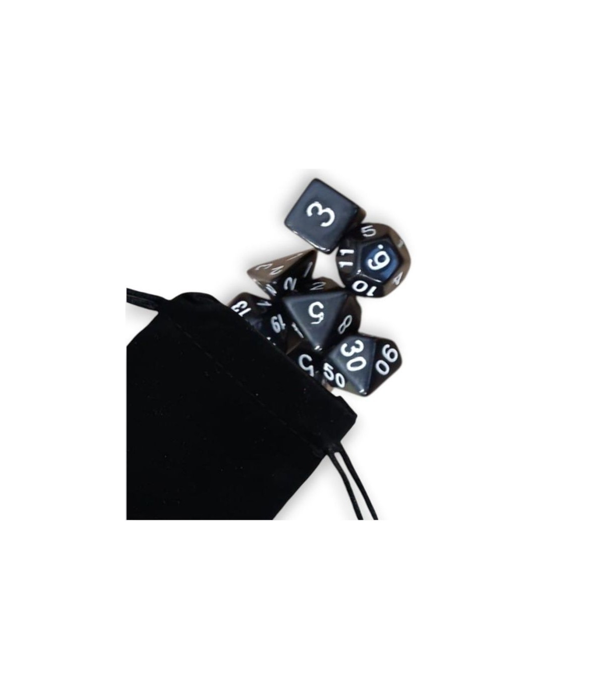 Set di 7 Dadi - Nero - Bianco + Sacchetto