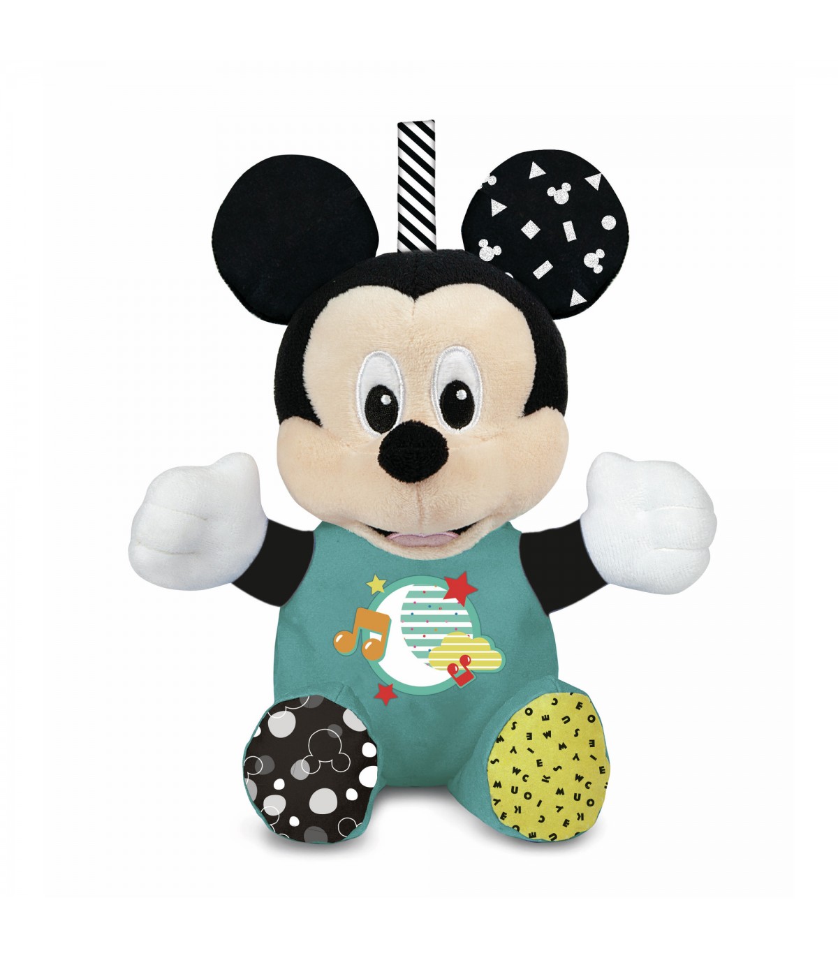 Il tenero peluche di Baby Mickey è il nuovo dolcissimo compagno della nanna per tutti i bambini. Grazie al pancino luminoso accompagna i più piccoli nel momento del sonno donando loro una piacevole sensazione di sicurezza durante la notte. Le dolci melodie sono perfette per cullare e far rilassare il bambino. Grazie alla pratica fascetta con lo strappo, questo dolcissimo peluche può essere appeso alla culla ed essere trasportato ovunque, diventando un inseparabile compagno di giochi.
