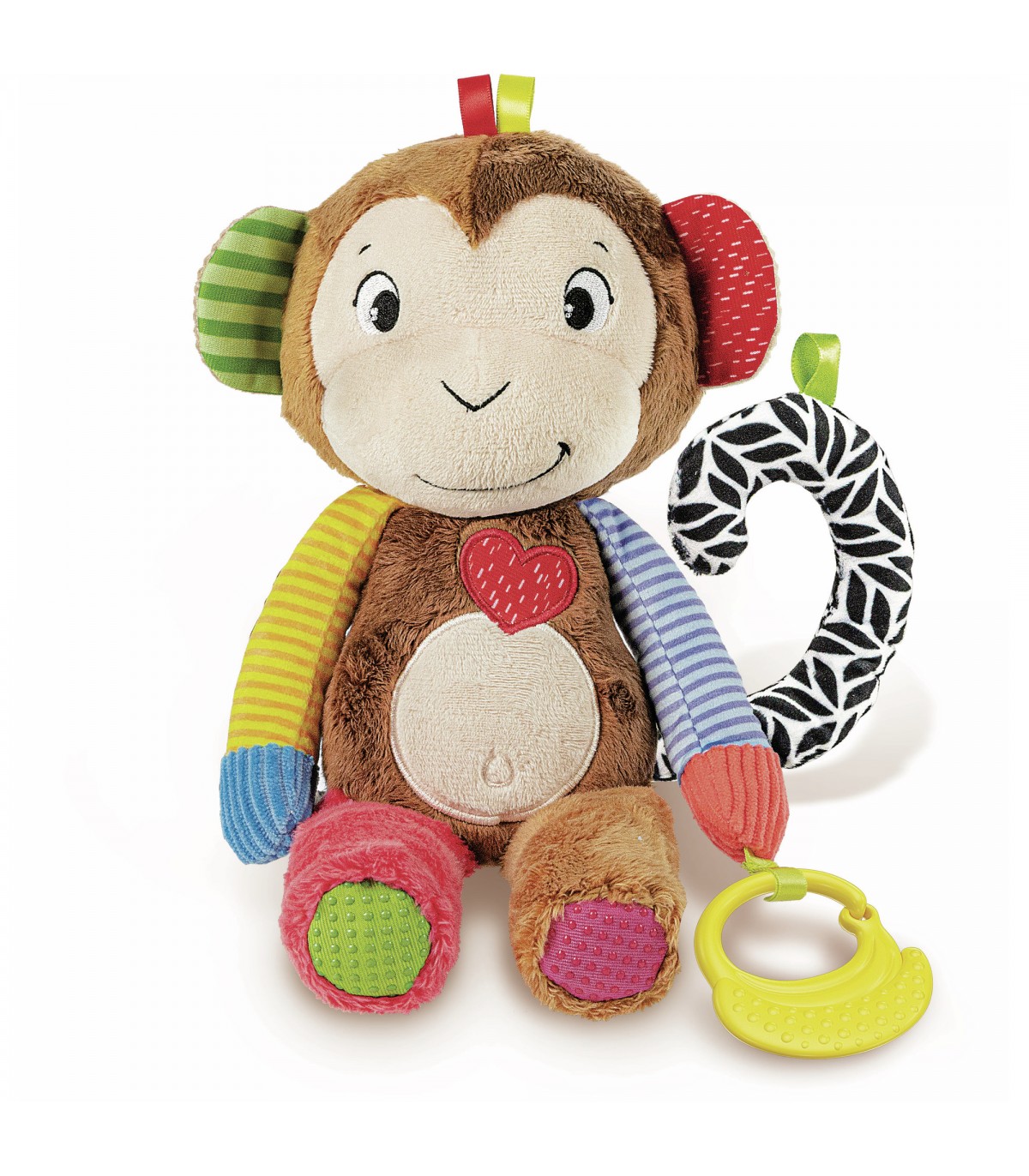 Dolce e morbida, la scimmietta stimola la curiosità dei bambini, con la voce li guida alla scoperta delle parti del corpo e con le canzoni stimola la lallazione e il linguaggio. La dolce scimmietta è un peluche con voce e melodie studiate per guidare i bambini alla scoperta del gioco, per divertire e per stimolare il linguaggio. Con tante funzioni interattive e 3 modalità di gioco per accompagnare nei vari momenti della giornata: gioca, canta e riposa. I tessuti con texture diverse invitano all'esplorazione con le mani per sperimentare varie sensazioni tattili, piacevoli e stimolanti. Alle diverse parti del corpo corrispondono diversi sonaglini ed effetti sonori: per stimolare l'udito, la curiosità e una prima comprensione del rapporto causa-effetto.