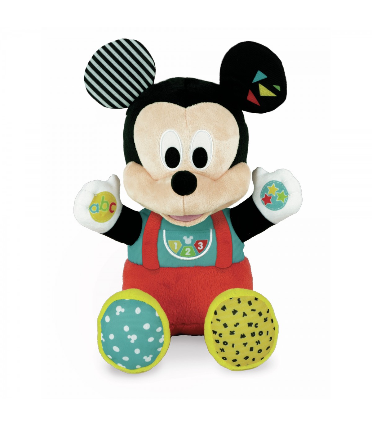 Il tenero peluche di Baby Mickey in morbidissimo tessuto diventerà presto il migliore amico di ogni bambino! Baby Mickey, grazie ai 3 tasti posizionati sulle mani e sul pancino,canterà tante allegre filastrocche con la voce originale di Baby Mickey. Le dolci canzoni guideranno il bambino ad imparare le lettere, i numeri e i colori, per apprendere in compagnia del personaggio Disney preferito dai bambini!