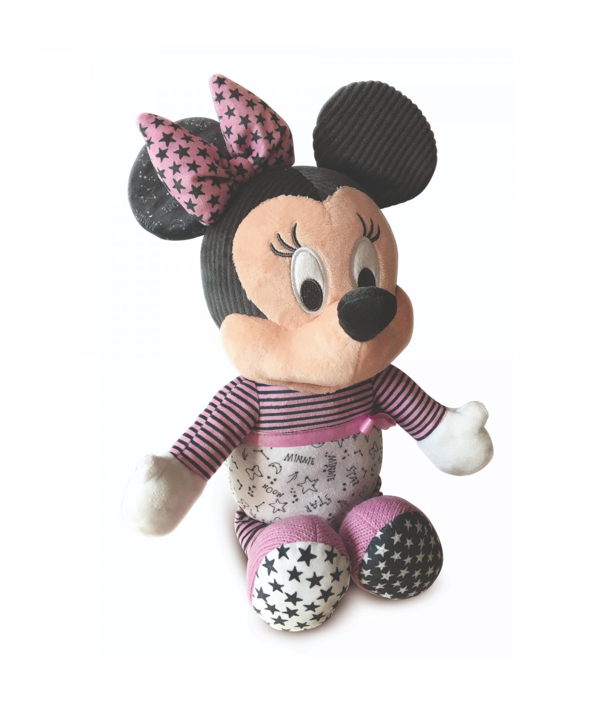 Un morbido e ricercato peluche interattivo di Baby Minnie per accompagnare con dolcezza i più piccoli verso il momento della nanna. Baby Minnie riproduce melodie e rumori bianchi, ideati per supportare il rilassamento del bambino, calmandolo e rassicurandolo. Le luci sul pancino di Baby Minnie con funzione cromoterapica donano una piacevole sensazione di sicurezza nella fase pre-sonno e durante la notte. I tanti diversi materiali del peluche stimolano lo sviluppo tattile e la sensorialità.