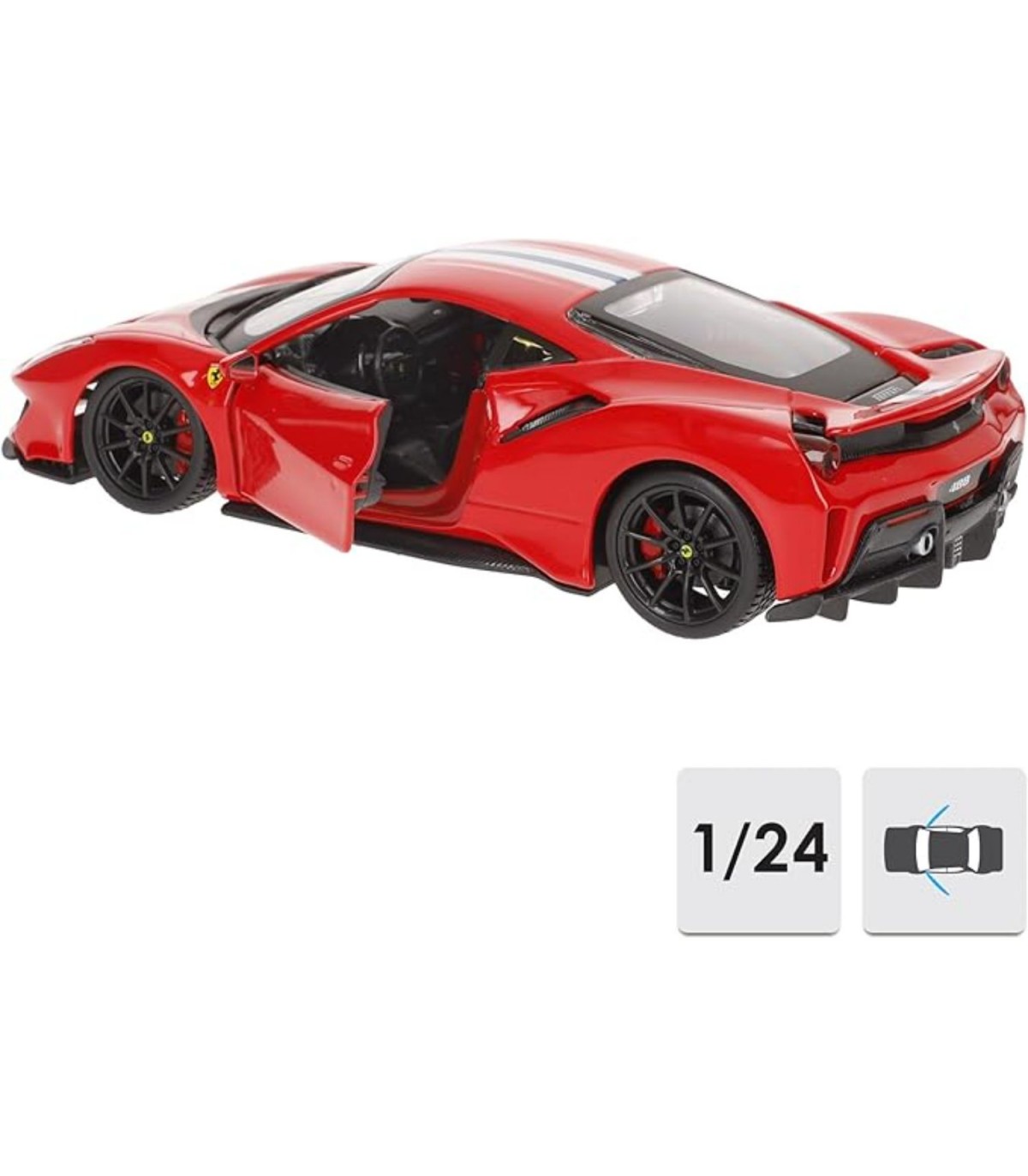 Modellino Ferrari 488 Pista in scala 1:24. Particolari dettagliati, porte apribili e volante sterzante. Modello da collezione.