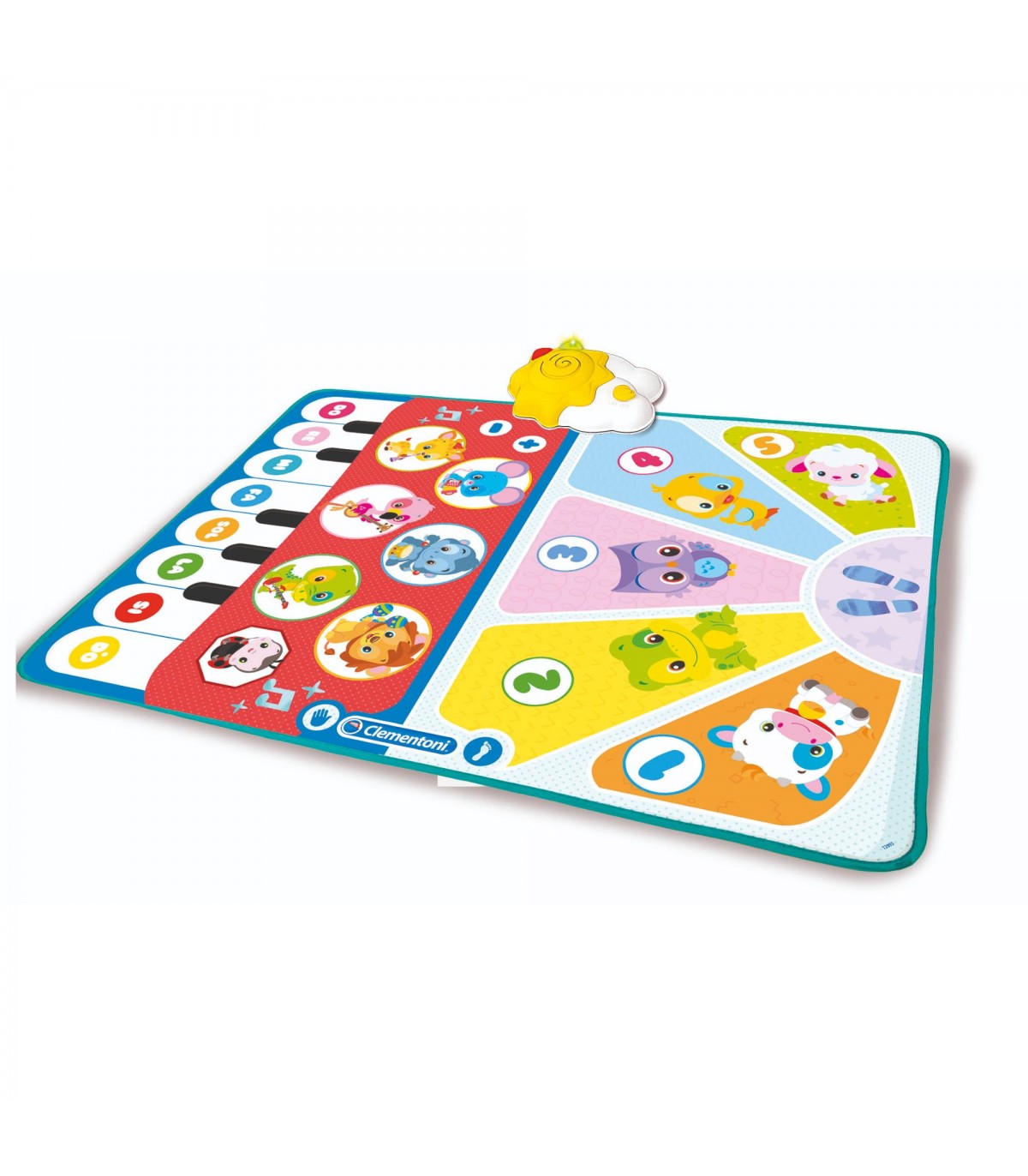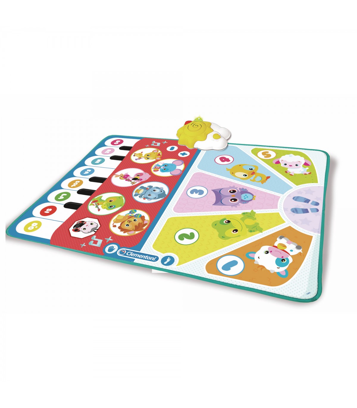 Un tappetone elettronico musicale per giocare in movimento e imparare sulle note dell'allegria! Con 2 modalità di gioco, per apprendere il senso del ritmo, le note musicali, gli strumenti e tanto altro ancora grazie a semplici quiz basati sulle associazioni. Premendo con le mani sui tasti degli strumenti musicali il bambino può ascoltare simpatiche melodie, con il tasto direttore d'orchestra si cambia canzone... ed è tutta un'altra musica! E con la modalità di gioco in piedi, premendo i tasti del tappetone con i piedi il bambino impara a riconoscere i versi degli animali e i primi numeri giocando in movimento. Sviluppa la manualità, le capacità motorie e logiche.