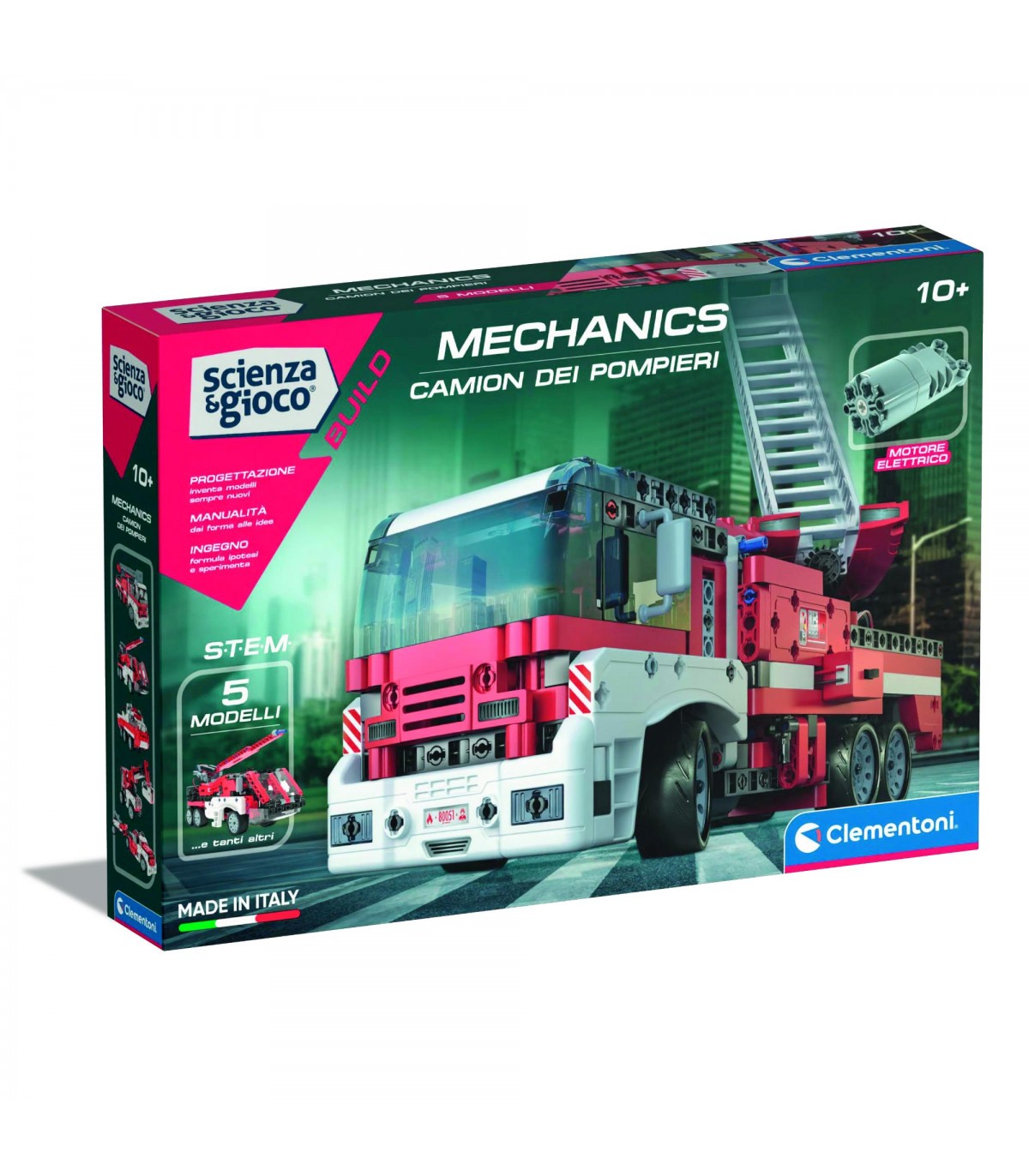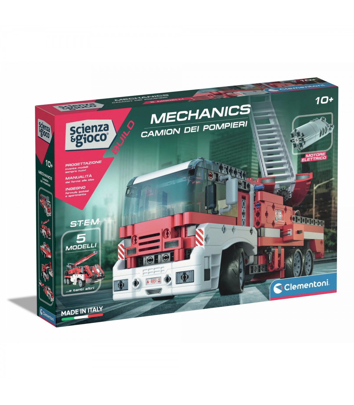 Un grande camion dei pompieri motorizzato e altri 4 modelli motorizzati da costruire per sperimentare e imparare i più importanti concetti della meccanica e dell'ingegneria! Ogni volta una sfida diversa con cui divertirsi a pensare e immaginare possibili soluzioni e montaggi. Un grande laboratorio di costruzioni per stimolare la creatività e l'immaginazione oltre alla manualità. Con tutto l'occorrente per lasciare il bambino libero di testare le sue idee e verificare in modo concreto le soluzioni. La scala dei pompieri si alza e si abbassa manualmente, mentre il motore attiva sia la rotazione a 360° della scala, sia le ruote per la trazione.Corri verso incredibili missioni di soccorso! Con un manuale illustrato e un'app per scoprire nuovi modelli e le fasi di montaggio in modo semplice e divertente. La ricchezza dei componenti, la qualità Made in Italy, la precisione degli incastri e l'adattabilità dei pezzi permette di costruire riproduzioni sempre diverse. Un'esperienza di gioco completa: assembla le parti e ricostruisci i meccanismi, per mettere in moto il mezzo e vivere mille avventure.