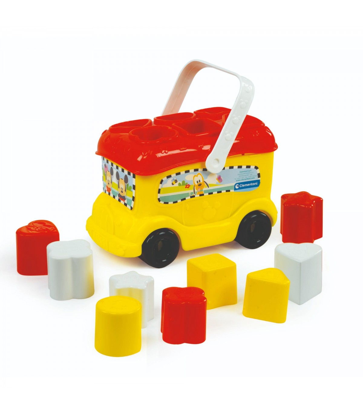 Un simpatico autobus contenitore per stimolare il bambino a riconoscere le forme e i personaggi Disney preferiti. Contiene 9 formine colorate da inserire con le immagini dei simpatici personaggi Disney. Stimola la manualità.