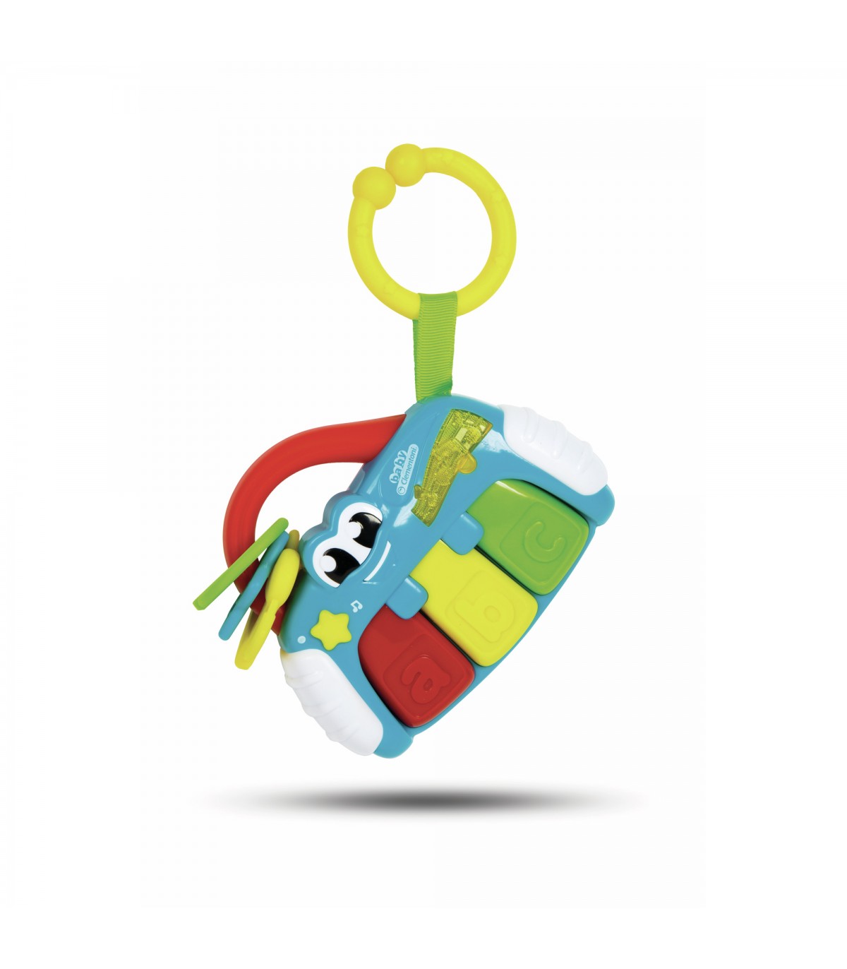 Un sonaglino a forma di piano per i piccoli pianisti del futuro! Questo simpatico sonaglino ha 3 tastoni per intrattenere il bambino con tante dolci melodie e per portarlo alla scoperta delle prime lettere in modo semplice e divertente. Con 3 pendagli in morbida gomma da mordicchiare, perfetti per la fase della dentizione e un pratico gancio per appendere il sonaglino. Stimola la manualità e la percezione uditiva dei più piccoli.