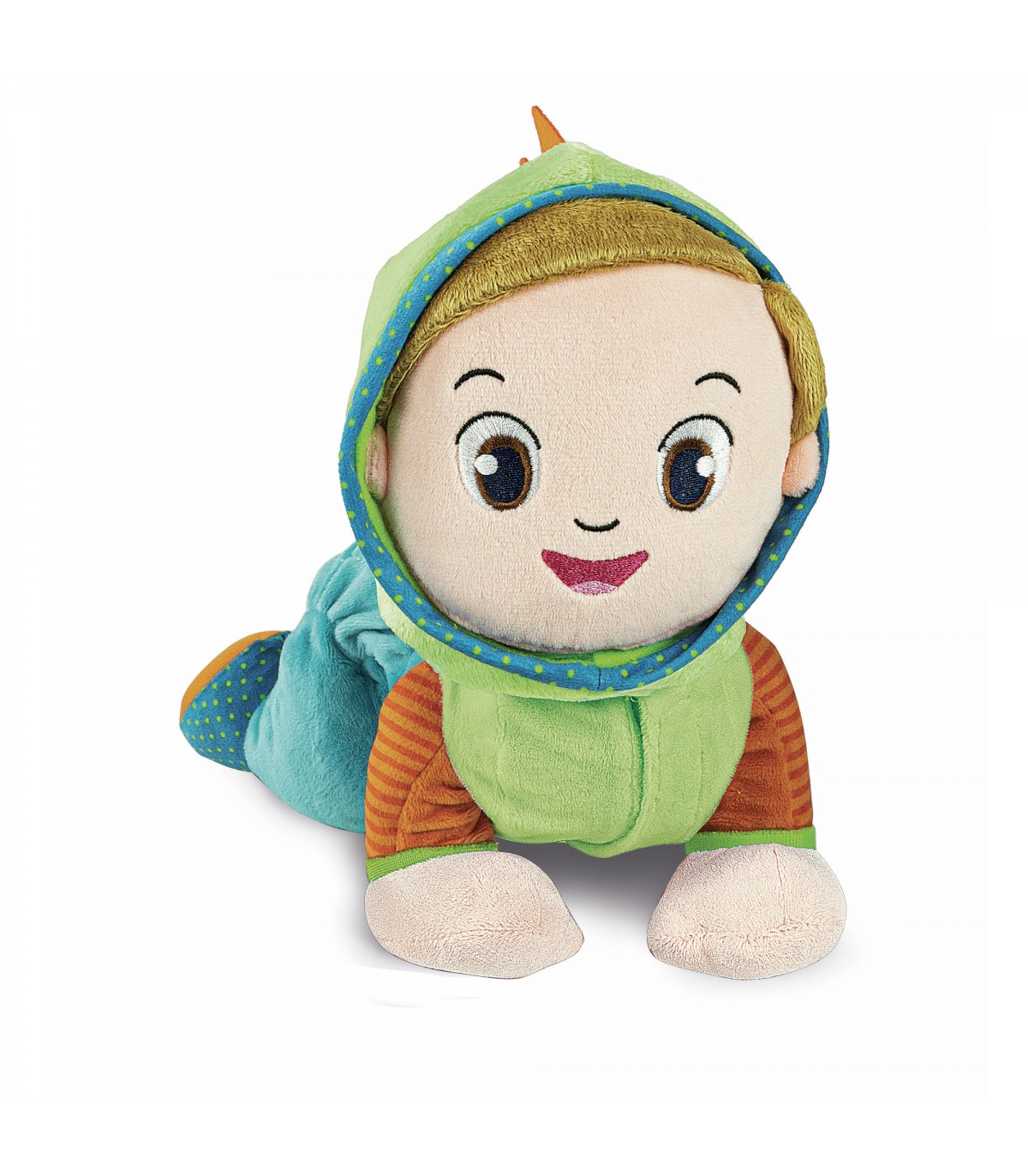 Un dolce bimbo di peluche per imparare a muovere i primi passi nel mondo attraverso il gioco imitativo. Questo tenero peluche è anche un centro attività con melodie e numeri attivabili grazie a due tastoni interattivi, per rendere il gioco più divertente e coinvolgente. Gattona davvero e aiuta il bambino a sviluppare le capacità motorie, invitandolo, con la voce e con il canto, a seguire i suoi movimenti. Realizzato in materiale di ottima qualità è studiato per accompagnare il bambino in una fase della crescita importante come quella del gattonamento.