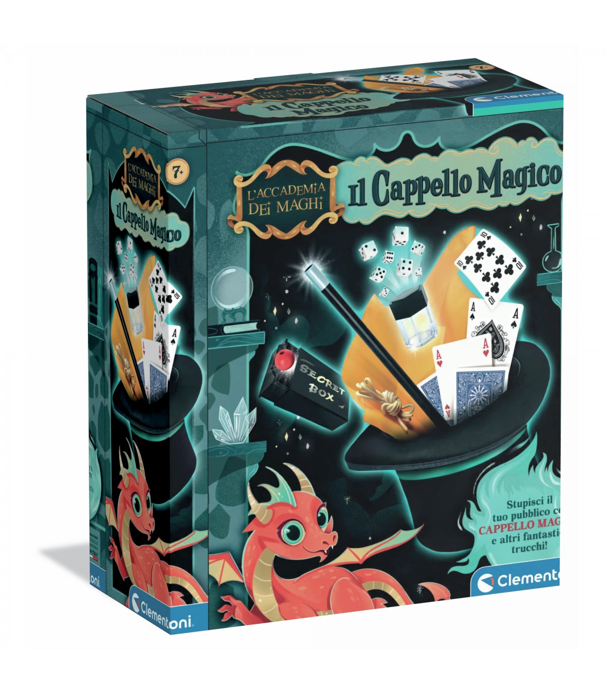 Un grande classico per tutti gli aspiranti maghi che potranno stupire amici e parenti grazie ai 40 favolosi trucchi contenuti nel gioco. Lascia tutti a bocca aperta con i giochi di carte, trasforma un dado in tanti piccoli dadi e scopri tutti i segreti della scatola magica! E per il gran finale da perfetto illusionista, ecco il fantastico Cappello Magico da cui far comparire un foulard colorato... et voilà, il gioco è fatto!
