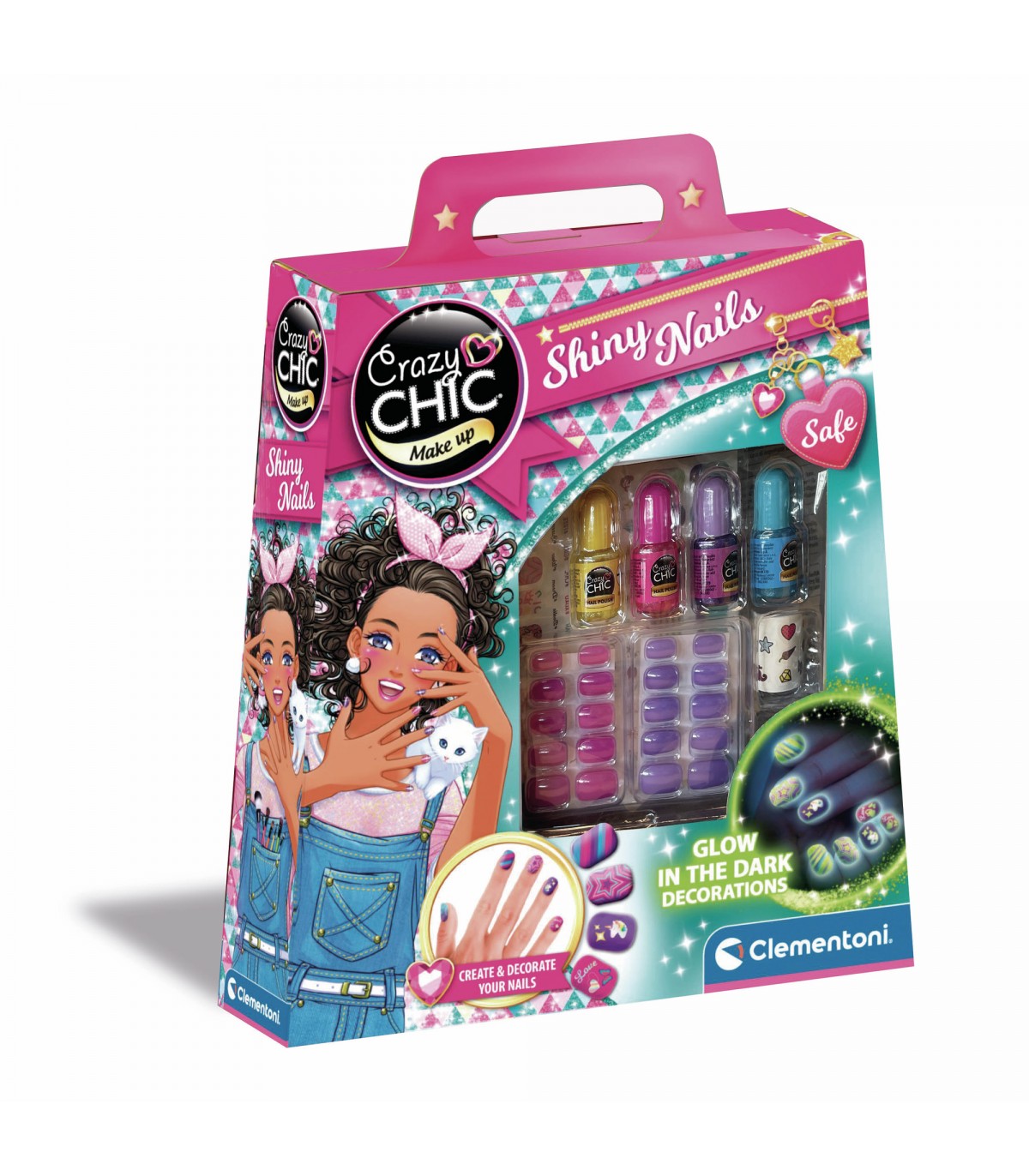 Scopri il set Crazy Chic - Shiny Nails, un'esperienza di bellezza che trasforma ogni piccola artista in una vera professionista della nail art! Questo kit completo è pensato per le bambine a partire dai 6 anni e offre tutto il necessario per creare unghie fluorescenti e scintillanti. Con smalti colorati e unghie finte, le piccole possono dare libero sfogo alla loro creatività, decorando le unghie in modi unici e personalizzati. Gli adesivi fluorescenti e gli stickers rendono ogni creazione ancora più speciale, permettendo di brillare in ogni occasione, anche al buio.