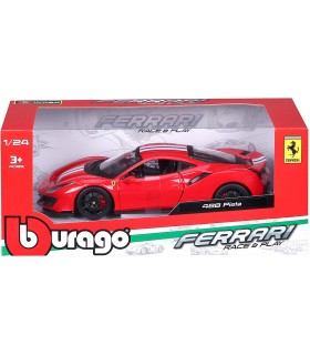 Modellino Ferrari 488 Pista in scala 1:24. Particolari dettagliati, porte apribili e volante sterzante. Modello da collezione.