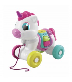 Un dolcissimo unicorno trainabile da portare sempre con sé. Attraverso i tasti sulla sella il simpatico unicorno prende vita, mangia, ride, e fa divertire il piccolo con effetti sonori e canzoncine. Grazie ai tasti...