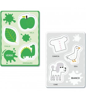 Una cassa piena di 70 pezzi tra cui 3 animali costruibili: una giraffa, una scimmia, un coccodrillo. Da 18 mesi. Made in France