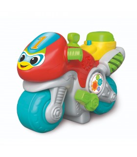 Una coloratissima moto che è anche un divertente centro attività elettronico. Supporta il bambino nell'apprendimento di lettere e numeri grazie ai tasti interattivi: il bauletto da premere e la chiave da girare....