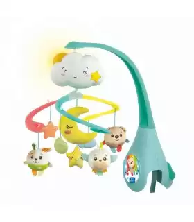 La nuvoletta diffonde a scelta 10 o 15 o 20 minuti continuativi di dolci melodie e di rumori bianchi rilassanti che creano un'atmosfera serena per conciliare il sonno del bambino. La lenta rotazione dei personaggini...