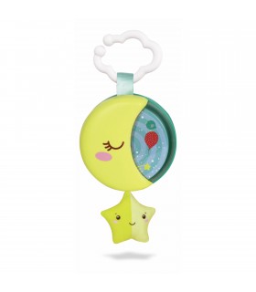 Il tenero carillon a forma di luna e la morbida stellina accompagnano il bambino nel momento della nanna per fare tanti sogni d'oro in un mondo di dolcezza. Tirando la maniglia a forma di stellina il carillon suona...