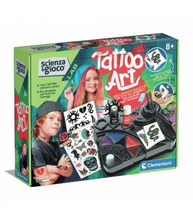 Un laboratorio, ma anche un incredibile set con tutto il necessario per realizzare tatuaggi alla moda! Contiene un banchetto da lavoro, pennelli, coloranti liquidi e stencil per realizzare tatuaggi a mano libera...