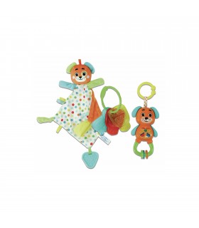 Un tenero kit con tutto quel che occorre per accogliere al meglio i nuovi arrivati: un tenero comforter, un sonaglino coloratissimo e delle chiavi moridicchiose in plastica morbida. Un colorato rattle con le sembianze...