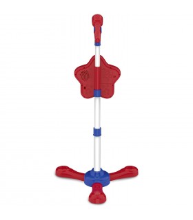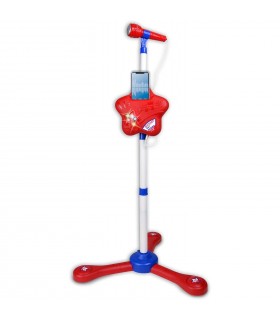 Microfono da palcoscenico - Asta regolabile in altezza - 12 brani dimostrativi - Connessione ad un lettore di MP3, (smartphone, tablet, CD player...), cavetto incluso - Effetti luminosi - Alim.: 3 batterie da 1,5V...