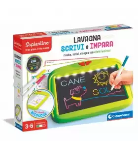 Una speciale lavagna dotata di un piano trasparente con luci LED RGB e pennarelli fluorescenti per divertirsi a disegnare e approcciarsi alla scrittura. Inserendo le schede illustrate sotto il piano trasparente il...