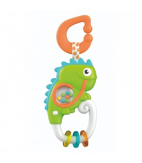 Il simpatico sonaglino a forma di camaleonte diventerà il passatempo dei più piccoli! Muovendolo il sonaglino attiva allegre melodie ed effetti sonori, mentre le palline nella pancia del camaleonte e i ciondoli...