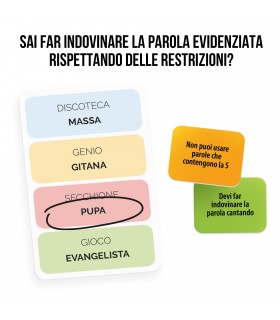 Siete in grado di far indovinare una parola senza mai pronunciare la lettera A, mentre gli avversari... vi disturbano contando ad alta voce? Tra obblighi e restrizioni folli, questo party game metterà alla prova...